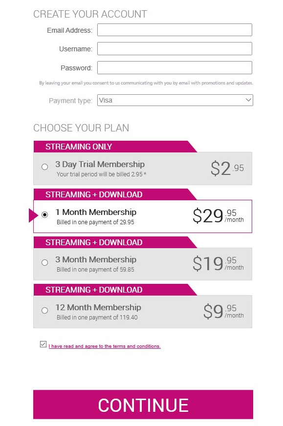 1ドル/ 二日間入会 (ダウンロード、ストリーミング再生可能) (自動継続) |